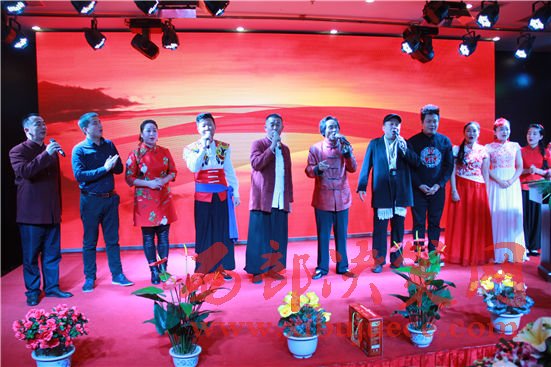 隨后,劉美玉大師兄周金品現(xiàn)場(chǎng)一邊寫(xiě)書(shū)法一邊演唱民歌《圪梁梁》,師弟馮小紅獻(xiàn)上陜北說(shuō)書(shū),李春茹、馮小紅聯(lián)唱《拜年》,嘉賓演唱《走壺口》等為其新歌發(fā)布會(huì)和首場(chǎng)演唱會(huì)加油打氣。“男子漢從哪里跌倒就在哪里爬起來(lái),這才是陜北男子漢的氣概”,西部歌王王向榮親自登臺(tái)為愛(ài)徒劉美玉加油打氣,師徒們還聯(lián)唱了《東方紅》,把發(fā)布會(huì)氣氛推向高潮。