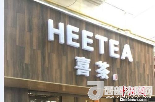 資料圖:在店鋪門頭上抄襲使用與“喜茶”中文商標(biāo)相同、與“Heytea”英文商標(biāo)近似的組合標(biāo)識。供圖 申海 攝