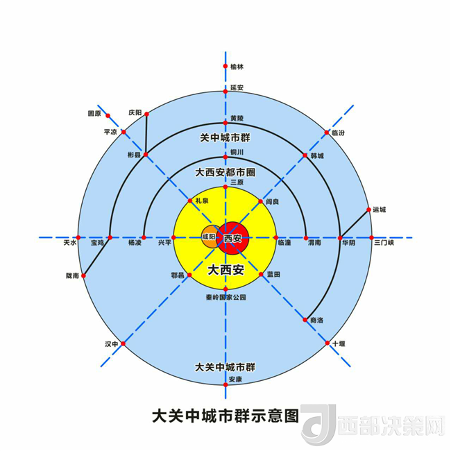 為研究大西安為中心的大關(guān)中城市群,我們先后赴河南、四川、安徽、浙江做了廣泛調(diào)研,并與咸陽(yáng)市、西咸新區(qū)、西安市和省上相關(guān)部門(mén)做了深入探討,提出構(gòu)建大西安為中心的大關(guān)中城市群設(shè)想。