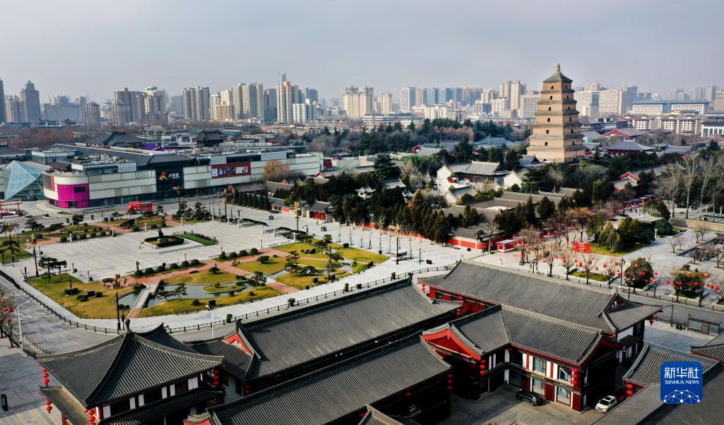 12月28日拍攝的西安市大雁塔周邊區(qū)域(無(wú)人機(jī)照片)。新華社記者 陶明 攝