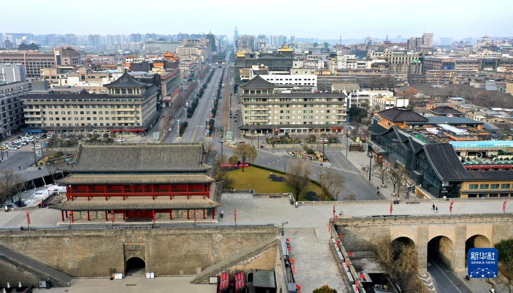 12月28日拍攝的西安市永寧門附近區(qū)域(無(wú)人機(jī)照片)。新華社記者 陶明 攝