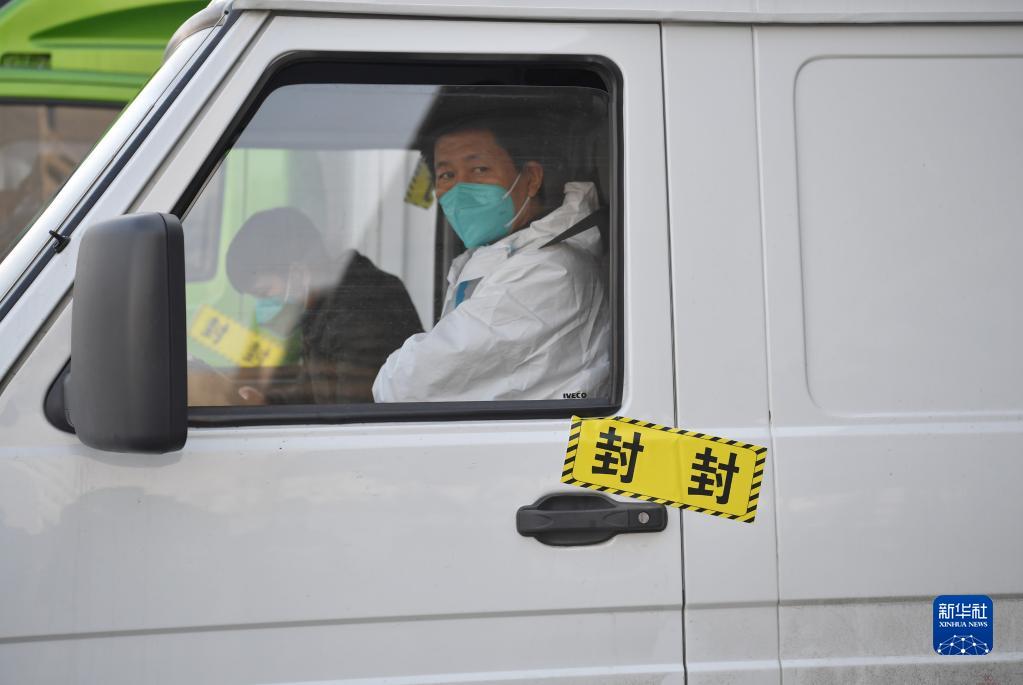 陜藥集團(tuán)派昂醫(yī)藥公司通過給社會(huì)運(yùn)輸車輛駕駛室貼封條的方式,避免進(jìn)入園區(qū)的外部車輛人員感染園區(qū)(12月28日攝)。新華社記者 邵瑞 攝