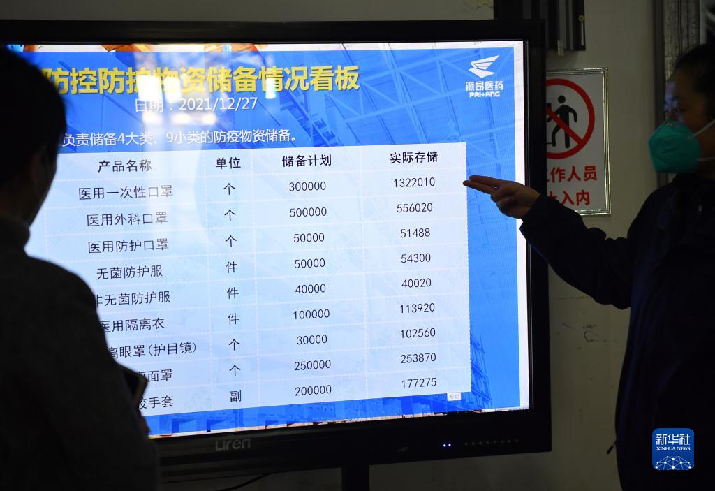 12月28日,陜藥集團(tuán)派昂醫(yī)藥公司工作人員在查看倉庫內(nèi)的疫情防控防護(hù)物資儲(chǔ)備情況。新華社記者 邵瑞 攝