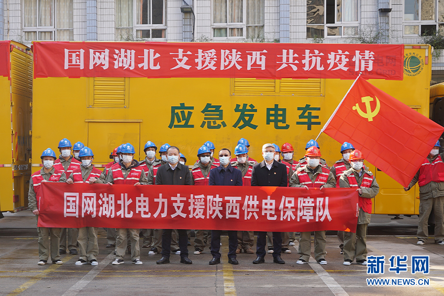 圖為國網(wǎng)湖北電力支援陜西抗擊疫情保供電隊(duì)伍出發(fā)前合影。新華網(wǎng)發(fā)