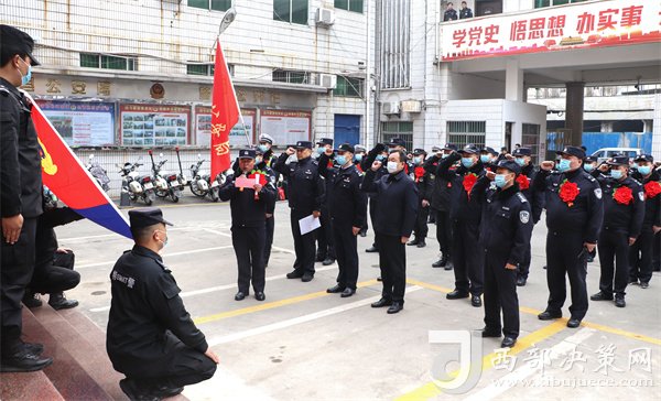 在隨后舉行的宣誓儀式上,全體隊員整齊列隊、精神抖擻,應(yīng)急支援隊隊長唐紅斌帶領(lǐng)全隊人員緊握右拳,面向警旗鄭重宣誓,全體民警誓言鏗鏘、精神豪邁、信念堅定,展現(xiàn)了新時代勉縣公安隊伍良好精神風(fēng)貌和戰(zhàn)勝疫情的堅定決心。