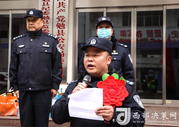 西部決策網(wǎng)訊在當(dāng)前疫情防控的關(guān)鍵時期,勉縣公安局全體民輔警積極響應(yīng)縣局黨委號召,準(zhǔn)備隨時奔赴抗疫一線,堅決確保人民生命健康安全和社會大局安全穩(wěn)定,1月3日上午,勉縣公安局抽調(diào)30名民輔警組成疫情防控應(yīng)急先鋒隊舉行宣誓儀式。副縣長、局黨委書記、局長陳玉存出席并講話,局黨委委員、副局長余洪波主持宣誓儀式。局黨委委員、駐局紀(jì)檢組組長張建鴻;局黨委委員、副局長蔣軍;局黨委委員、政工室主任李建軍參加儀式。