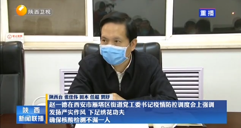 1月4日,省長(zhǎng)趙一德在西安市雁塔區(qū)疫情防控指揮部召開(kāi)街道黨工委書(shū)記疫情防控調(diào)度會(huì),對(duì)疫情防控工作進(jìn)行再動(dòng)員、再落實(shí)。他強(qiáng)調(diào),要深入學(xué)習(xí)貫徹習(xí)近平總書(shū)記關(guān)于疫情防控工作的重要指示批示精神,認(rèn)真落實(shí)孫春蘭副總理要求,發(fā)揚(yáng)嚴(yán)實(shí)作風(fēng),下足繡花功夫,確保核酸檢測(cè)不漏一人,全力以赴扭轉(zhuǎn)疫情防控被動(dòng)局面。