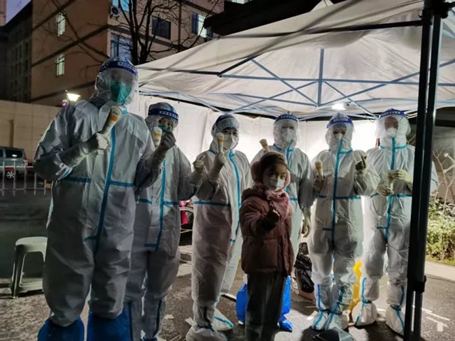 小姑娘看著這一幕十分心疼,和媽媽做完核酸回去后又下樓,將一袋護(hù)手霜送給了王航英。“姐姐,趕快抹上護(hù)手霜,手就不疼了。”孩子稚嫩的關(guān)心讓王航英十分感動(dòng),她們也以實(shí)際行動(dòng)向孩子展示了作為一名醫(yī)務(wù)工作者的使命與擔(dān)當(dāng)。