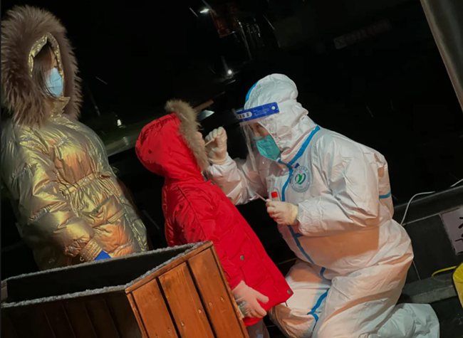 “姐姐,你冷不冷,你手疼不疼?”在排隊(duì)的隊(duì)伍中,一個(gè)小姑娘帶著哭腔問(wèn)身著防護(hù)服的王航英。原來(lái),王航英已經(jīng)連續(xù)采集核酸近十個(gè)小時(shí),換班時(shí)她脫下手套,想抽一張紙,結(jié)果雙手被凍得通紅,反復(fù)幾次都沒(méi)成功。