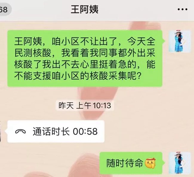 看到同事們紛紛出征,何娟心急如焚。得知所住社區(qū)要開(kāi)展全員測(cè)核酸的任務(wù)時(shí),何娟立即和社區(qū)溝通,請(qǐng)纓作為志愿者參加小區(qū)居民核酸采集工作。