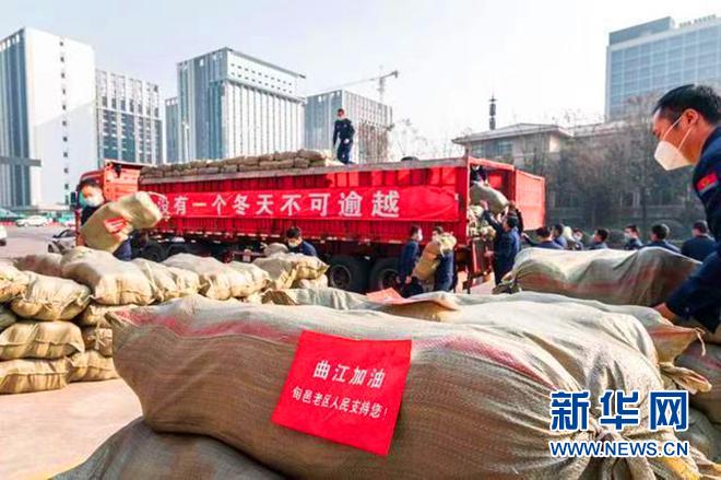 “沒(méi)有一個(gè)冬天不會(huì)過(guò)去,沒(méi)有一個(gè)春天不會(huì)到來(lái)。”2022年元旦過(guò)后,貼著車體標(biāo)語(yǔ)的運(yùn)輸車隊(duì),滿載著30萬(wàn)陜西旬邑紅色老區(qū)父老鄉(xiāng)親暖暖的情誼直奔西安曲江。