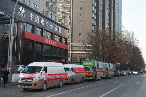 西部決策網(wǎng)訊 “出發(fā)!”1月11日下午14:00,隨著公司黨委書記、董事長梁向峰一聲令下,滿載 3000斤面粉、3000斤大米、 1000斤食用油、1000斤各類蔬菜、500斤大肉、200斤牛肉、200斤羊肉、400箱牛奶酸奶、500斤速凍水餃、1000箱衛(wèi)生紙、2200瓶洗發(fā)露、2200袋洗衣液等抗疫生活物資的8輛貨車,再次從中國水電十五局水電大廈樓前出發(fā),送往陜西職業(yè)技術(shù)學(xué)院。