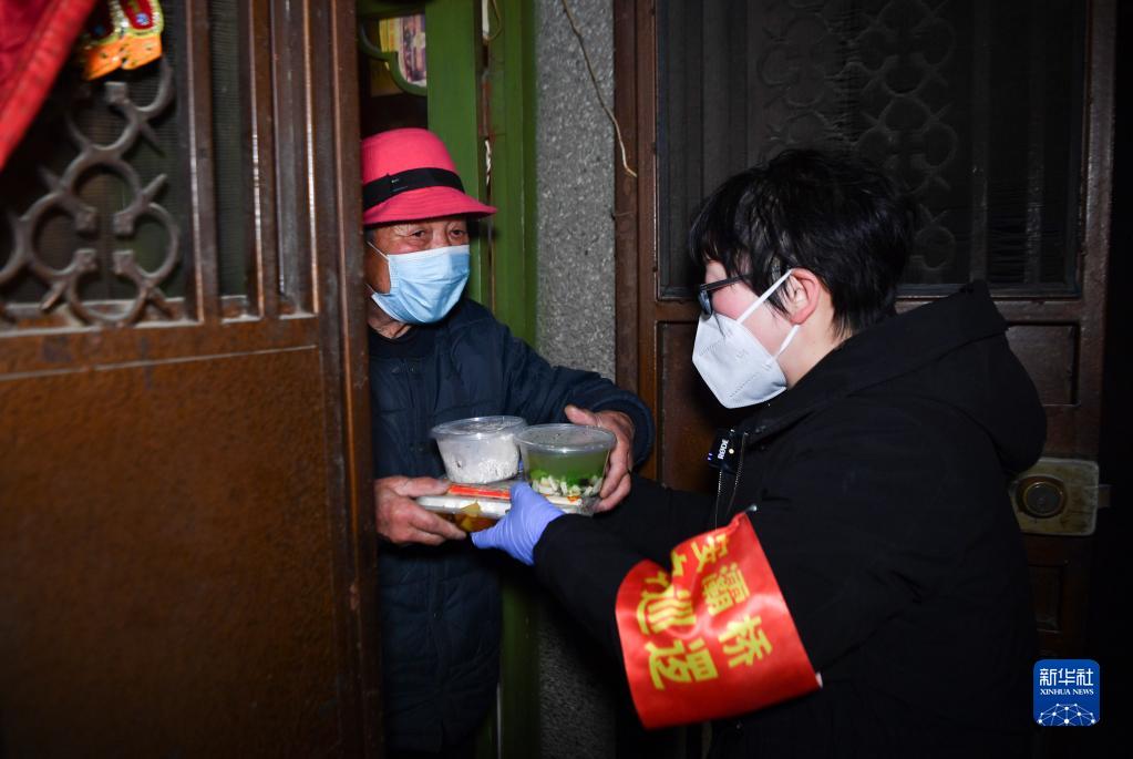 1月12日,三家村工作人員根據(jù)前期摸排情況逐戶派送午餐。新華社記者 張博文 攝