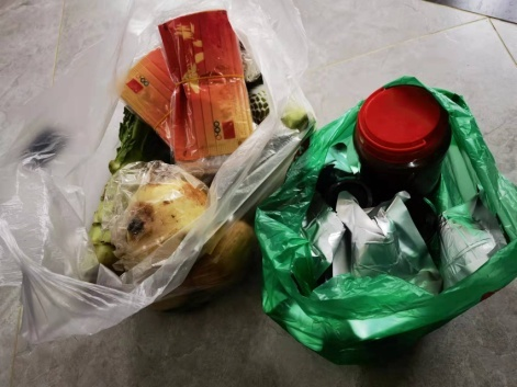我下沉在我居住的小區(qū)百貴園,小區(qū)不大,實際入住了244戶。下沉干部和志愿者主要負(fù)責(zé)愛心菜的消殺、接收、分揀、分組投送入戶,各個流程有條不紊地進(jìn)行著,我負(fù)責(zé)一個單元的投送入戶。