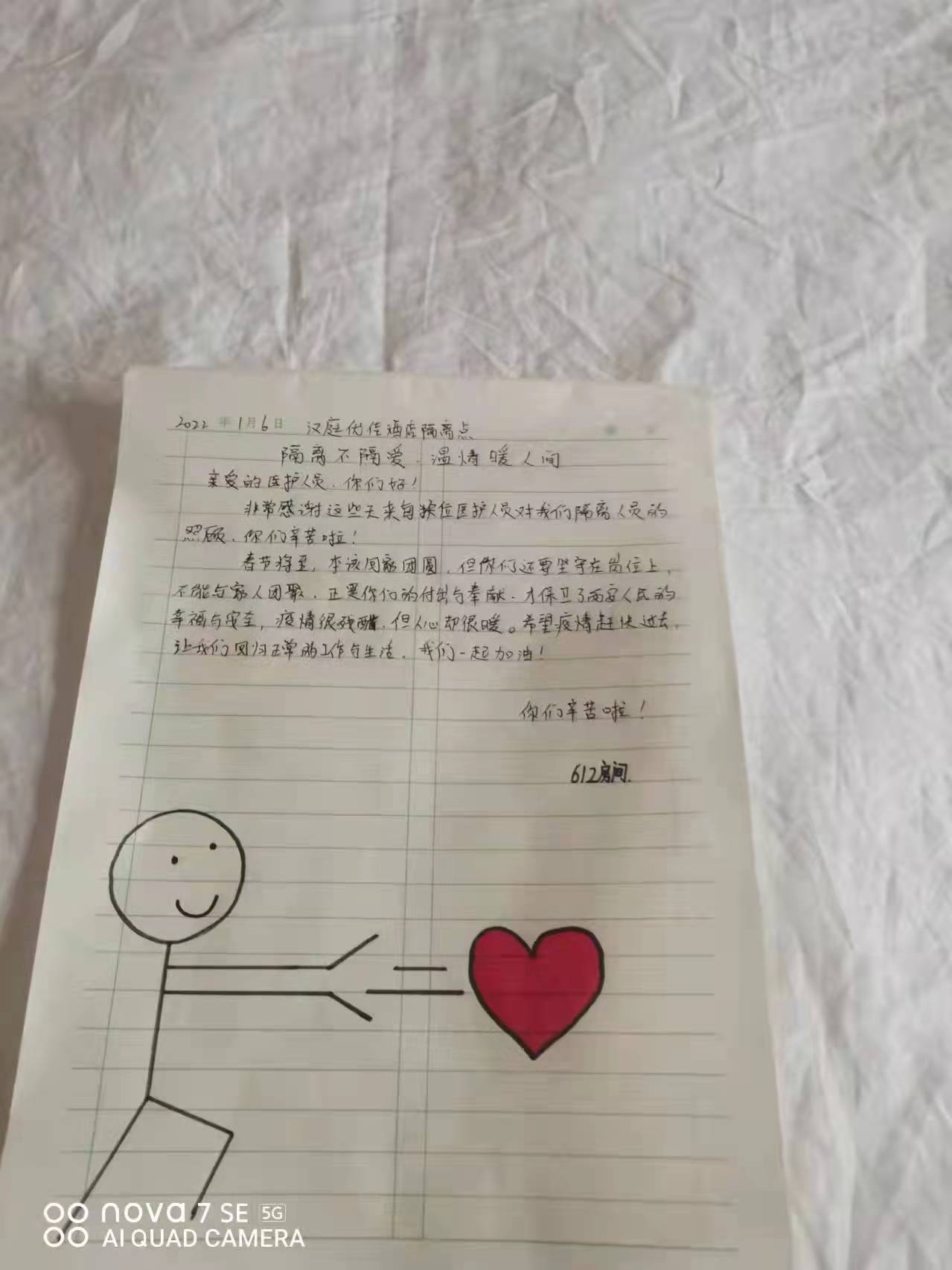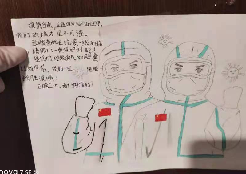 一幅幅手抄報(bào),一封封感謝信,一條條群留言,都在記錄著一個(gè)個(gè)勇毅且溫情的抗疫瞬間。“今天是我被隔離的最后一天,收拾好書包和小行李箱,準(zhǔn)備回家了,看著剩余的水果、零食,此刻心里不止是歡喜和激動(dòng),還有一絲不舍……”一名小學(xué)生在感謝信中寫到:“接到老師的通知,我們要集體隔離,內(nèi)心還有點(diǎn)害怕,不知該怎么辦,來(lái)到酒店后,看到張張和藹可親的臉,我的心放下了,你們?yōu)槲覀儾珊怂帷⑺惋埐耍屛腋械綔嘏?,感謝強(qiáng)大的祖國(guó),我們一定好好學(xué)習(xí),長(zhǎng)大做一個(gè)對(duì)社會(huì)有用的人”。據(jù)介紹,隔離期間,有四名12歲的學(xué)生是獨(dú)自隔離,沒(méi)有家人的陪護(hù),在工作人員每天的問(wèn)候中,他們懂事有禮貌,只要求工作人員幫他們打印作業(yè),每天在房間堅(jiān)持看書學(xué)習(xí)。