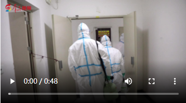 進(jìn)屋后,消殺組組員趙旭霞、劉蘇林迅速開展家庭環(huán)境消殺,對門、家具、衣服、被單等物品和臥室地面、墻壁等進(jìn)行全面徹底消毒。消殺組首先對環(huán)境物體表面等進(jìn)行常量噴灑消毒,隨后使用空氣消毒機(jī)進(jìn)行空氣噴霧消毒。