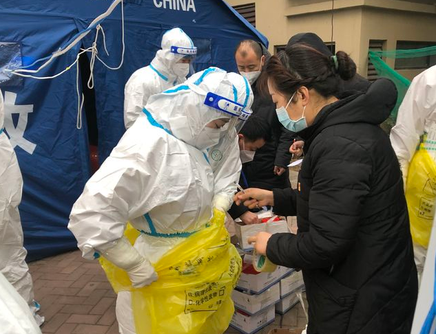 分試管、發(fā)棉簽、配酒精……為醫(yī)護(hù)人員與志愿者配齊裝備之后,她又奔波到其他點位,查漏補缺,確保采樣工作順利進(jìn)行。采樣結(jié)束后,醫(yī)護(hù)人員和志愿者已經(jīng)撤離,她總是最后離開。