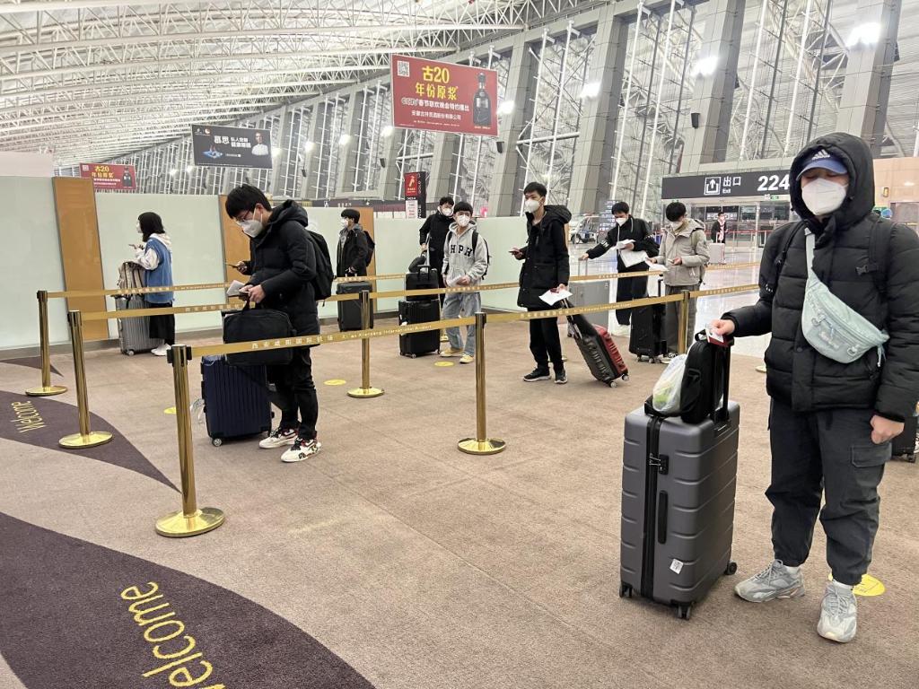 1月20日凌晨5點10分,西安天還未亮,首都航空西安基地的保障人員已經(jīng)就位,等候?qū)W生們的到來。6點39分,第一輛學(xué)生大巴到達機場,在工作人員的指引下,大家間隔1米接受核碼查驗,有序進入候機樓辦理值機手續(xù)。8點34分,162名學(xué)生已全部辦理完值機,托運行李148件,陸續(xù)通過安全檢查候機。9點31分,學(xué)生開始登機,并依次使用手部消毒,認真落實各項防疫政策,9點43分,162名學(xué)生已全部登機完畢。