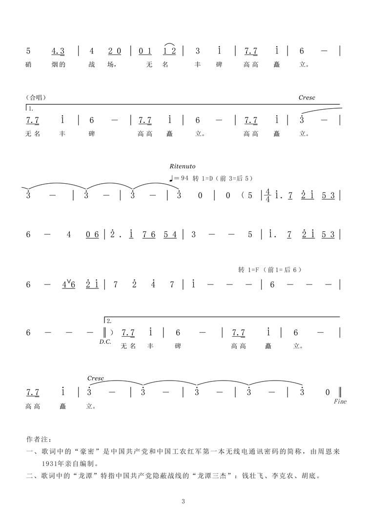 一、A1段歌詞中的“豪密”是中國共產(chǎn)黨和中國工農(nóng)紅軍第一本無線電通訊密碼的簡(jiǎn)稱,由周恩來1931年親自編制。