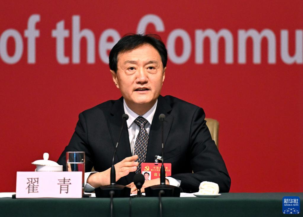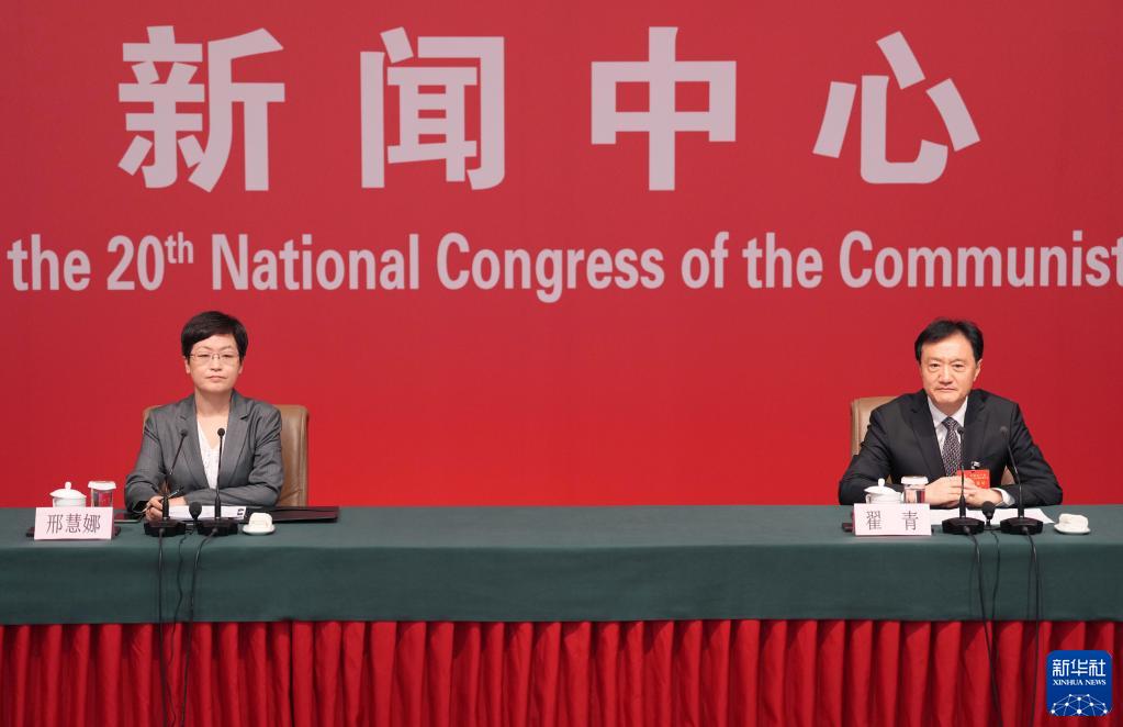 10月21日,中國共產(chǎn)黨第二十次全國代表大會(huì)新聞中心舉行記者招待會(huì)。生態(tài)環(huán)境部黨組成員、副部長翟青圍繞“建設(shè)人與自然和諧共生的美麗中國”主題與記者交流。新華社記者 宋彥樺 攝