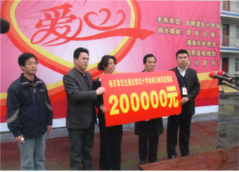 楊百章通過合陽(yáng)縣紅十字會(huì)向玉樹災(zāi)區(qū)捐款20萬元